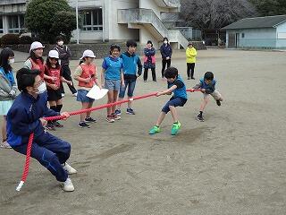 1学期は7月に鬼ごっこを、2学期は11月に台湾の小学生との交流活動として鬼ごっこや綱引きを行いました。そして、3学期は2月7日(水)と14日(水)の2日間で、全校ドッジボール大会を行いました。これは、全校の子ども達を縦割りで6チームに分け、総当たり戦で優勝を競い合う大会です。