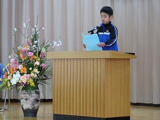 子ども達の作文発表では、1・2・3年生の代表の子どもが、1年間の思い出や3学期に頑張ったことなどをステージの上で発表しました。また、5年生の代表の子どもが、たくさんの発見と驚きがあった5年間の思い出は宝物であることなど、現在の校舎との別れの言葉を発表しました。