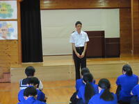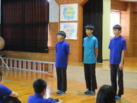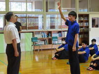 今週末に開かれる、南那珂地区中学校秋季体育大会に出場する男子バレーボール部の皆さんを激励する目的で推戴式を行いました。一人一人が自分の言葉で、意気込みを語る姿がりりしかったです。対戦相手は吾田中! 全力プレーで、勝利を目指して頑張ってください!