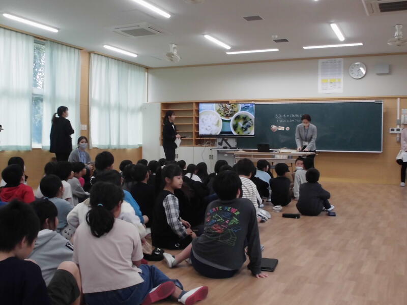 3年生は1組・2組合同で栄養教諭を講師に、食育の授業がありました。子どもたちは、普段食事している給食から食材に注目したり、健康でいるためにどうしたらよいかなどを考えたりしました。子どもたちが元気に過ごせるように考えられている給食を通して食の大切さに気付いていました。今日学んだことを生かして、残さず感謝しておいしくいただけるといいですね。