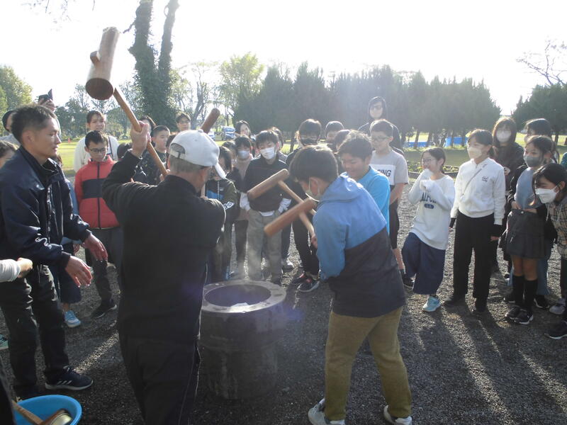 本日、参観日が行われました。5年生は、地域や保護者の方々にご協力いただきながら餅つきをしました。もち米がお餅になっていく様子を実際に目で見て驚いたり、力をこめて餅をついたりしていました。総合の学習でお米について学んできたので、単元のまとめまで頑張りましょう。