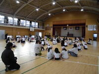本日、参観日が行われ、4年生は合同で体育を行いました。保護者の方々にもご参加いただきながら、体ほぐし運動を中心に行いました。子どもたちは、体の使い方を工夫し、元気いっぱい活動に取り組んでいました。寒さに負けない体づくりができればいいですね。
