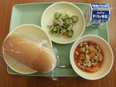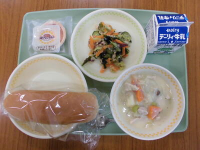 コッペパン、牛乳、白菜のクリーム煮、ごぼうのかみかみサラダ