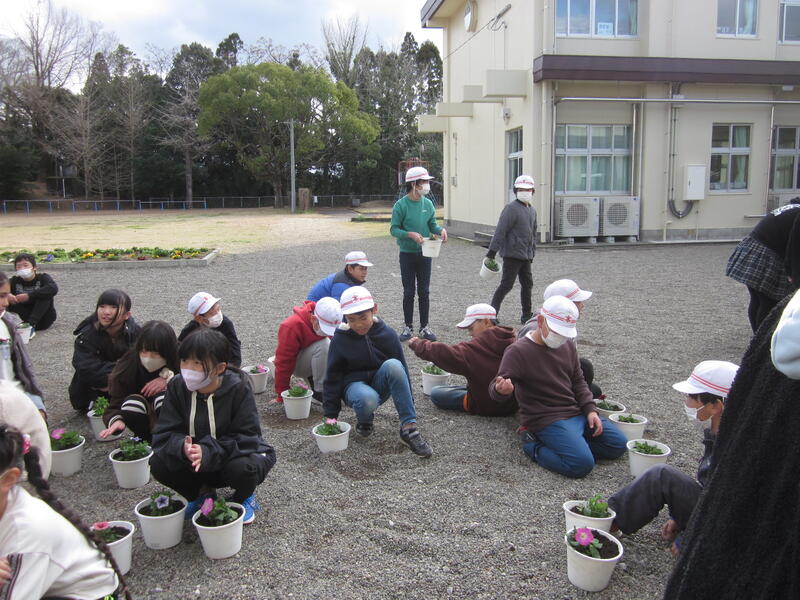 3月の卒業式にむけて、一人ずつペチュニアの花を植えました。