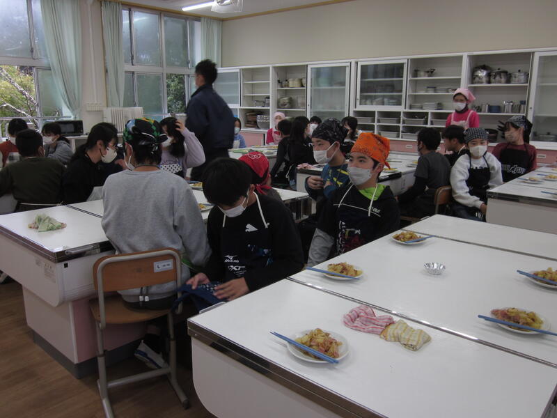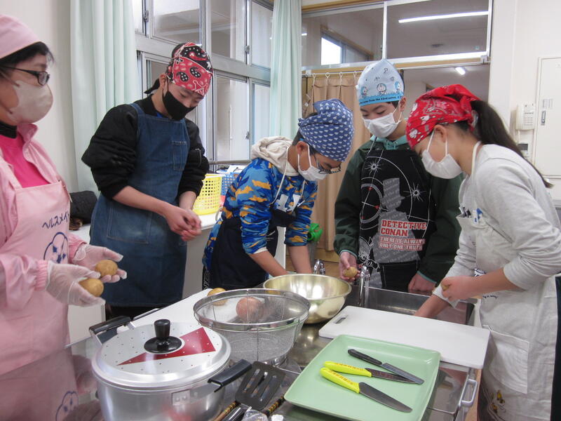 6年生はジュニア料理教室でジャーマンポテトを作りました。