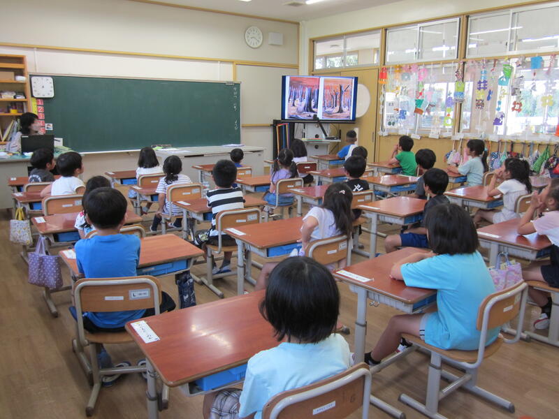 各教室で絵本の挿絵を見ながら、壹岐先生の読み聞かせがありました。
