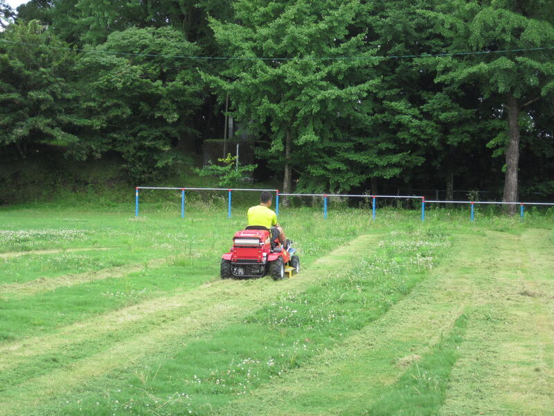 長く伸びた草がすっかり刈り取られ、気持ちよく外遊びができそうです。