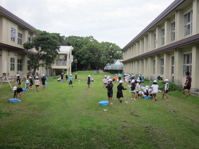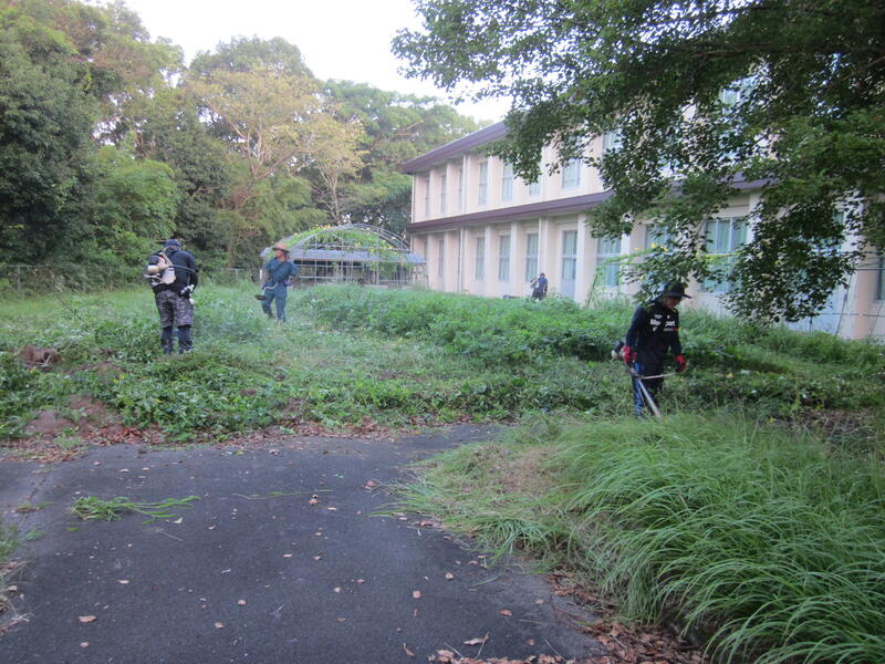 先日、PTA奉仕作業があり、運動場や中庭などの草刈りをしてくださいました。