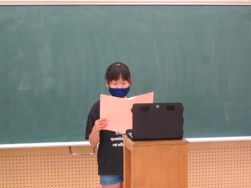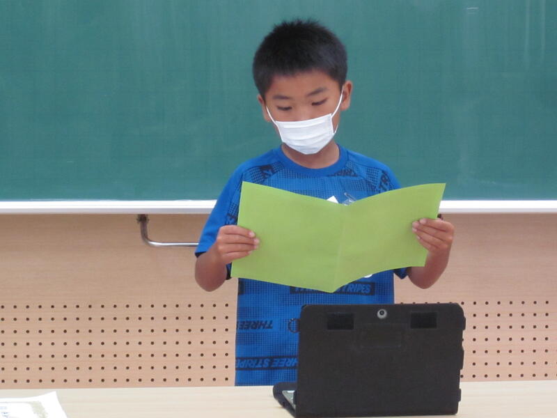 2年生と4年生の代表児童の作文発表があり、1学期の反省とこれから頑張りたいことを話してくれました。