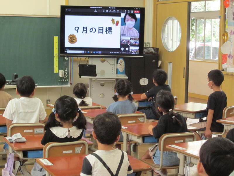 熱中症予防および感染症予防のため、教室と多目的室とをteamsでつないで実施しました。