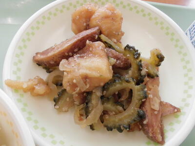 ☆☆沖縄県郷土料理☆☆ 麦ごはん、牛乳、かぼちゃのみそ汁、ゴーヤチャンプルー