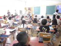 本日、参観日が行われました。3年生は、あまりのある割り算を学習しました。タブレット端末を活用しながら解き方を考え、学習問題に取り組んでいてよかったです。