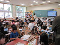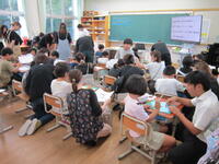 本日、参観日が行われ、5年生は算数の授業をしました。先生の話を聞いたり、ペアで教え合ったりしながら、学習課題にしっかりと取り組んでいました。図形の特徴を捉えながら問題を解こうとしていたのでよかったです。