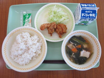 麦ごはん、牛乳、けんちん汁、チキン南蛮、添えキャペツ、タルタルソース