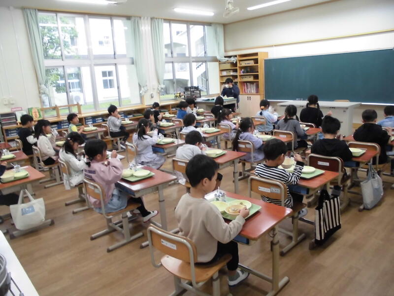 本日、新しい1年生の初めての給食でした。とても美味しそうに食べる姿が印象的でした。これから、もりもり食べて、元気でたくましい小学生に成長してほしいです。