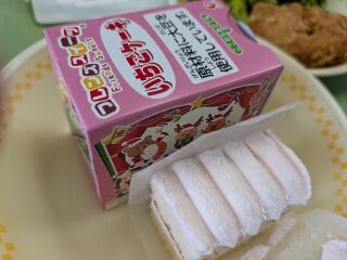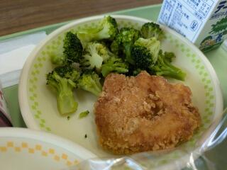 2学期最後の献立は、黒糖パン、野菜スープ、和風フライドチキン、添ブロッコリー、いちごケーキ、牛乳でした。