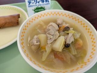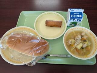 今日は、黒糖パン、冬野菜ポトフ、はるまき、牛乳です。体がほっこり温まるメニューですね。