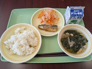 今日は、鏡開き献立で、麦ご飯、雑煮、さんま柚味噌煮、紅白なます、牛乳です。