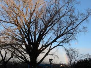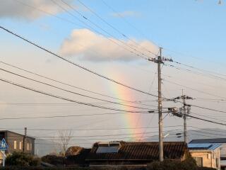 今日は、昨日よりも少し寒さが和らいだ朝でした。運動場では3年生と6年生が一生懸命に落ち葉集めをしてくれていました。 誰に言われるでもなく、率先してボランティアに励む姿に心が温まります。 ふと北西の空を見上げると、そんな子どもたちを応援するように、うっすらと虹が架かっていました。