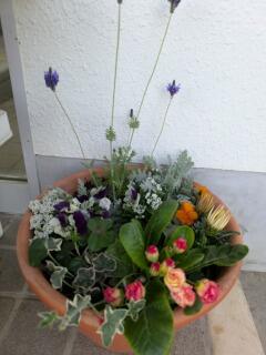 皆様をお迎えする玄関に、教頭先生が植えた季節の花が彩りを添えています。
