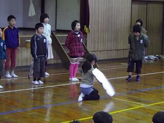 今日(2月12日〔水〕)の朝の時間に学年発表集会がありました。今回は、4年生の発表で演目は、