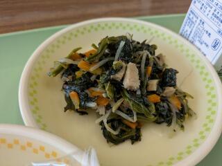 メニューは、麦ご飯、五目煮、洋風白和え、牛乳でした。