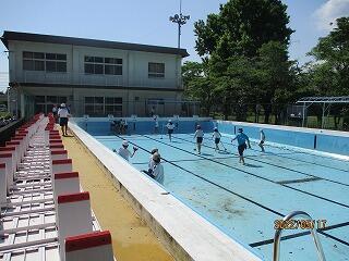 快晴に恵まれた6月7日は、5,6年生のプール開きでした。水しぶきを上げ、気持ちよさそうに水に親しむ子供達でした。