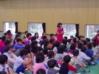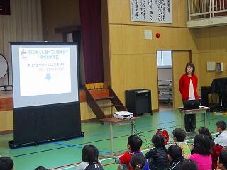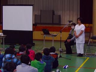 その後、柴田栄養教諭から朝ごはんについての話があり、子ども達は真剣に聞いていました。