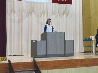 11月9日(月)の朝の活動の時間に音楽集会が行われ、3・4年生が次の日に行われる郡の音楽大会で発表する合唱と合奏を披露しました。合唱曲は、「いつだって」、合奏曲は、セカイノオワリの「炎と森のカーニバル」でした。どちらとも2ヶ月以上の練習の成果を発揮し、すばらしい合唱と合奏を聴かせてくれました。