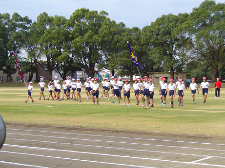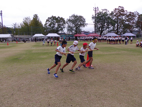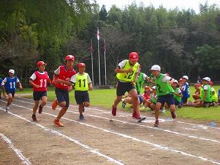 午後のはじめには、郡内5校の6年生を5つのチームに分けての競技も行い、他の学校の児童との交流も図ることができました。