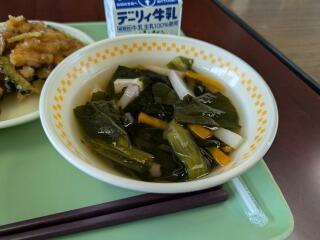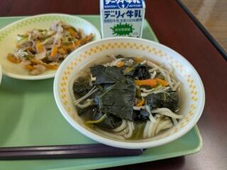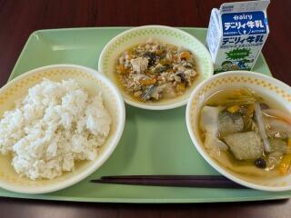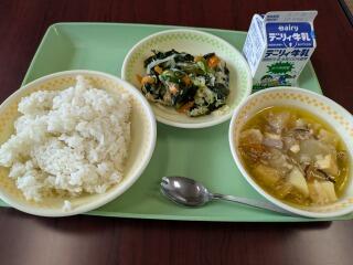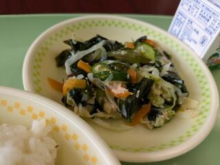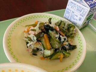 メニューは、麦ご飯、冬瓜のそぼろ煮、海藻サラダ、牛乳でした。