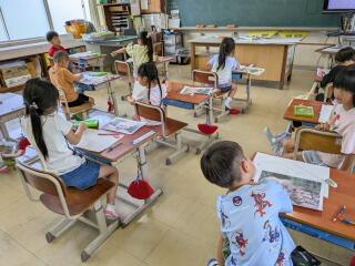 その後、同じ中学年児童がつくった作品が先生から紹介されると「うまい」「すごい」との声。自分もこんな短歌を作るぞという意欲が湧いた授業でした。