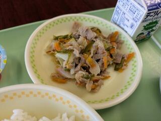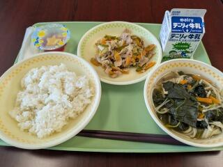 メニューは、麦ご飯、七夕汁、豚肉と野菜の生姜炒め、七夕ゼリー、牛乳でした。
