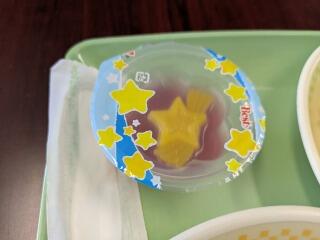 今日は行事食で、七夕汁には、魚のすり身の魚そうめんや星形のオクラがはいっていました。
