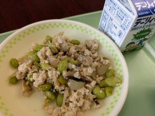 今日の給食は「麦ご飯、親子丼、きゅうりの梅酢和え、牛乳」でした。