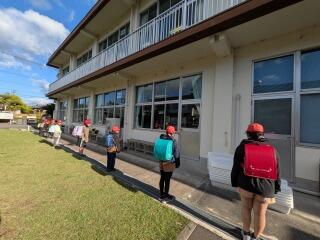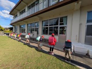 「自分の命を守る」ためにがんばることの一つ、一列歩行もずいぶんできてきています。