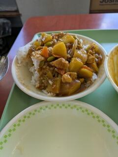 それもなんと「米粉のチキンカレー」隠し味のウスターソースが甘く、初めて食べる味でした。