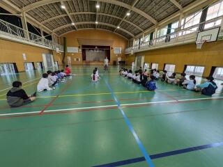 まずは、体育館で児童委員会の子ども達による「6年生を送る会」を行いました。