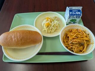 今日の給食は、「ひむかナポリタン、みかんサラダ、ミニミルクパン、牛乳」でした。