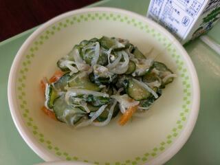 きゅうりともやしのシャキシャキ食感の梅酢和えも食が進みました。