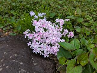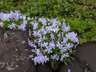 学校入り口に植木がありますが、その一角に小さなかわいらしい芝桜が咲いていました。
