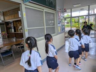 学校たんけん前に・・・1年生は、担任の先生と一緒に場所の確認です。