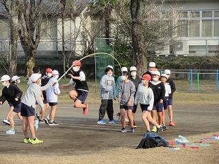 朝の元気タイムは、全校で縄跳びをしています。まず、各自で短縄をします。次にクラスごとに長縄にチャレンジ。みんな元気に活動していました。