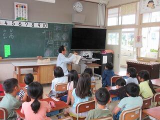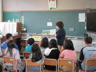 6月15日(木)に、出水市ツル博物館「クレインパークいずみ」から講師の先生をお招きし、ツルについて学びました。森永小は、出水市へ渡来してくるツルの餌として使ってもらうために、毎年、二番穂を刈って送っています。今回、その出水のツルについて、講演をしていただき、貴重な経験でした。子供達は実物大のツルの模型等にふれることもでき、喜んで学習しました。