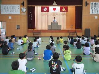 9月1日(金)は森永小学校の2学期始業式でした。子供達の元気な声が校庭に帰ってきました。代表の子供達が堂々と2学期にがんばりたいことを発表してくれました。その後の校長先生のお話をしっかりと聞く子供達でした。