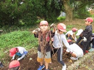 10月5日、2年生が芋掘りをしました。大きな芋に、みんな大喜びでした。