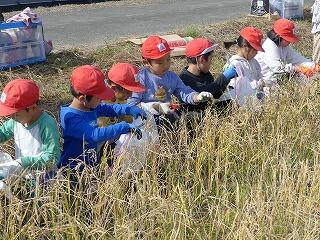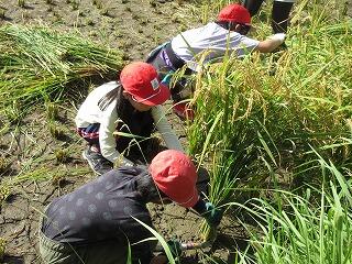 10月5日、5年生が稲刈りをしました。たくさん収穫できました。