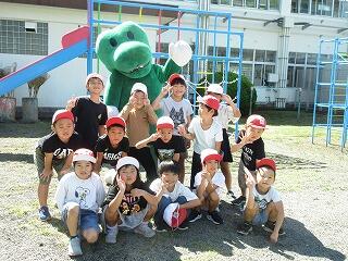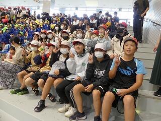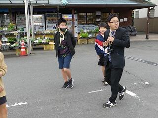 集合時間が迫ってきても、森永小学校の子どもたちはなかなか姿を現さないので、園内アナウンスを流してもらいました(笑)