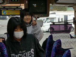 今バスは、高速に乗って国富町に向かっています。疲れが出たのでしょうね、バスの中はしんと静まり返っていますよ。このまま順調にいけば、学校到着時刻は予定通りの17:00頃になるようです。