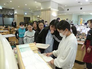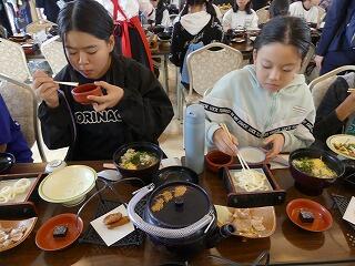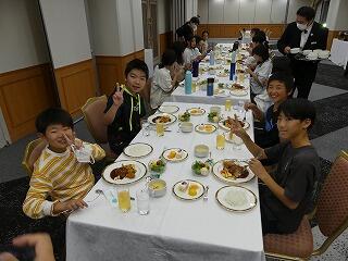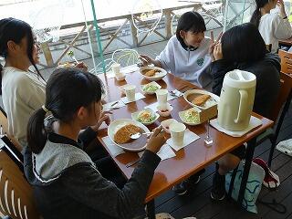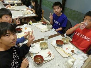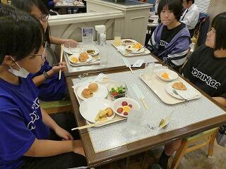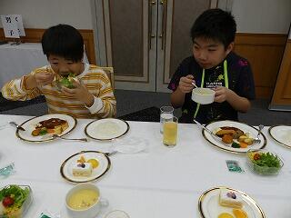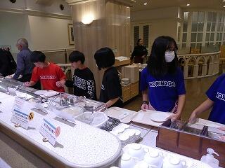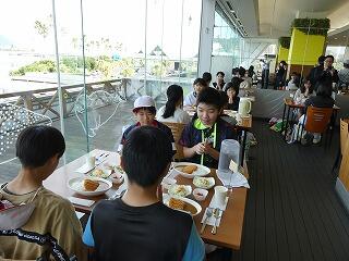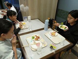 子供たちは班でそろって、昼食会場へ時間前にきちんと集合しました。バイキング形式の昼食です。